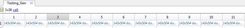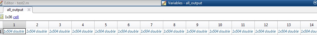 all_output{1,i}=outputsTesting_Gen:是一个大小矩阵(如所附图像所示的1*36个单元)。