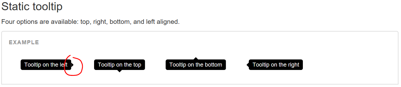 PS:我认为这是一个渲染的问题,一些关于身体的东西就在箭头后面,实际上不是混叠,而是接近它。也许让箭头与身体相交会解决这个问题,但是如果有一个来自Bootstrap团队的解决方案或者其他一些不会让我搞砸工具提示模板的配置,我会更愿意这样做的。