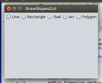 JFrame时,不应该这样做,因为这可以像DrawShapesGUI 是 JFrame一样,JFrame是一个严格的容器,而是基于JPanel创建GUI。请参阅Java Swing using extends vs calling it inside of class获取更多信息。figureID的成员,但是您从不使用它,因为每次在每个"ActionPerformed“方法中创建一个新局部变量figureID时: