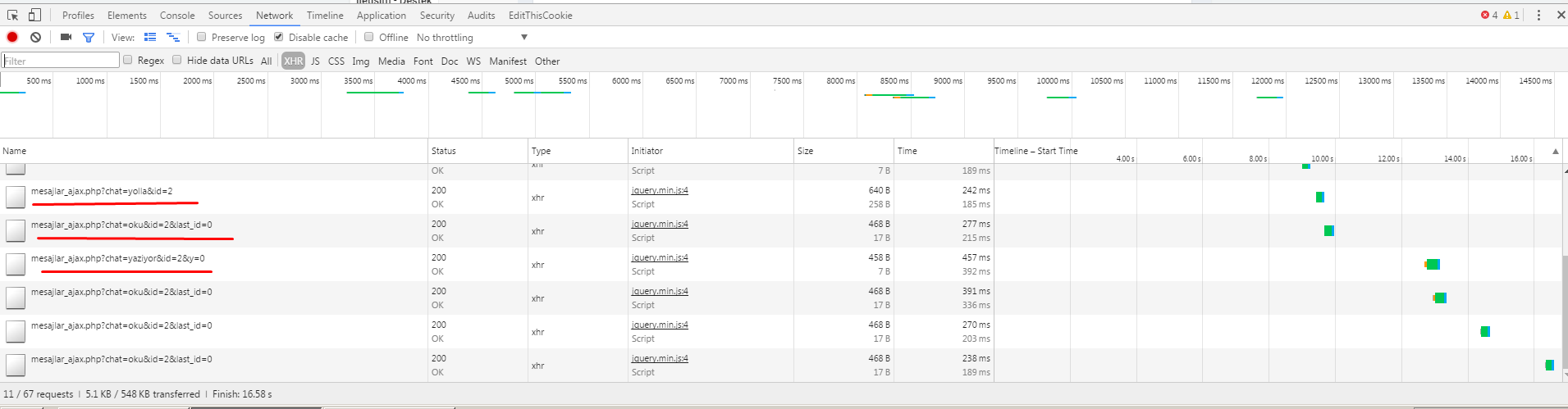 我有网站。我用jQuery AJAX编写了聊天页面。有3个ajax调用。