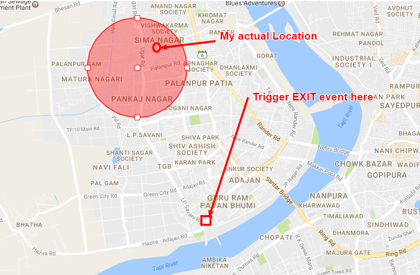 假设我位于Geofence内部的一个位置,不幸的是,有一段时间我会进入或退出事件触发器,然后我会检查geoEvent.getTriggerdLocation()属性并检查Geofence半径,