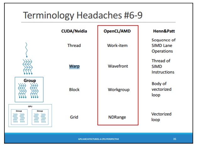 众所周知,有翘曲(在CUDA中)和WaveFront (在OpenCL中):http://courses.cs.washington.edu/courses/cse471/13sp/lectures/GPUsStudents.pdf