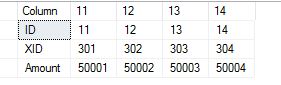SELECT 11 as ID, 301 as XID, 50001 as Amount UNION ALL