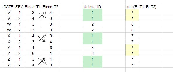 # DATE SEX Blood_T1 Blood_T2 Unique_ID Sum