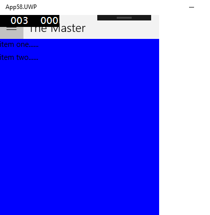 我在StackLayout表单中的MasterPage of a MasterDetailPage中有一个VerticalOptions "FillAndExpand",但它不能在我的UWP应用程序中填充整个ContentPage (我不知道,它在Android或iOS上是否正确工作)。在截图中,你可以在左下角看到一个绿色的条形图。