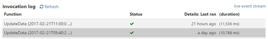 昨天09:40,我尝试手动运行问题函数并运行它,所以我将调度更改为(0 0 11 ** *),它按预期在上午11点运行。所以我把时间表改回(0 0 1** *),但今天凌晨1点它没有运行: