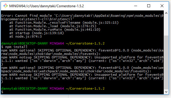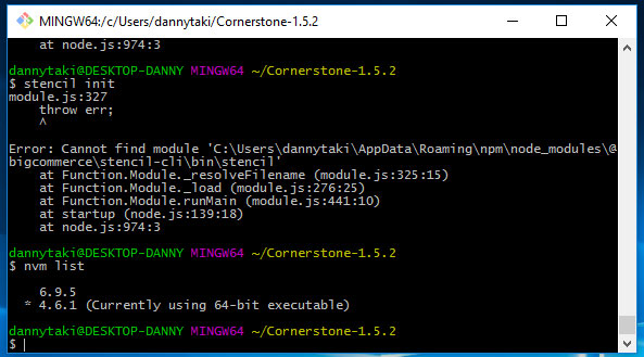 Error: Cannot find module 'C:\Users\dannytaki\AppData\Roaming\npm\node_modules\@bigcommerce\stencil-cli\bin\stencil'