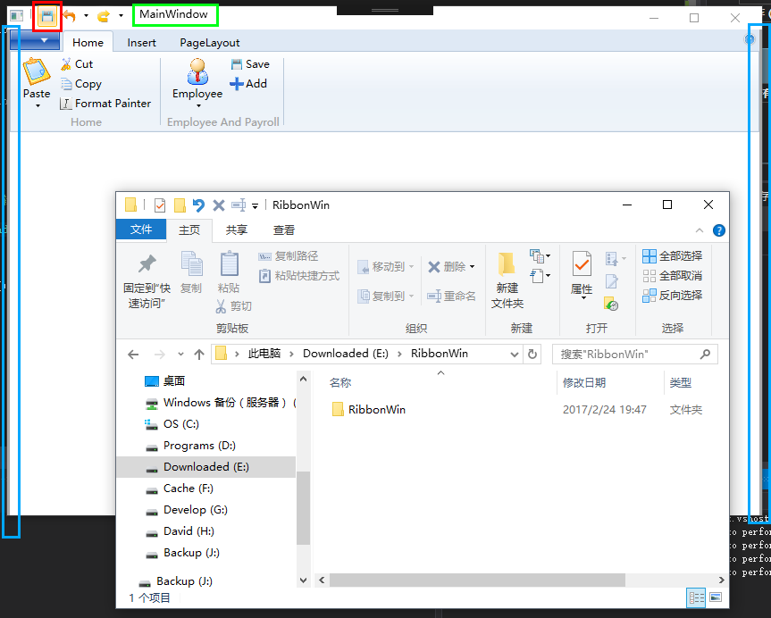 您应该使用System.Windows.Controls.Ribbon而不是nuget的RibbonControlsLibrary