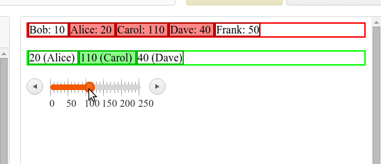onSlide,但是它只会在鼠标释放时(即当滑动停止时)生成onChange。如何在滑块滑动时更新第一级和第二级显示器?最后--这是奥雷利亚最好解决的问题吗?也就是说-我目前在first-level-items.js中有一个数组;然后first-level-items.js有一个对second-level-items.js的单例引用,因此它可以在其中调用一个方法,以更改第二级数组的filtered副本,然后作为第二级显示和滑块的源.有什么更好的方法来组织这个吗?