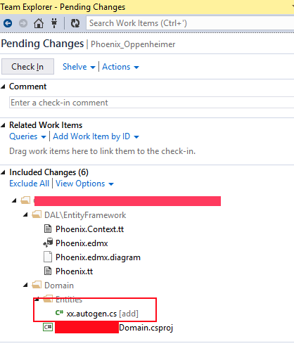 \Phoenix\Domain\Entities\*.autogen.cs我们使用的是Vs2013 + Tfs2017