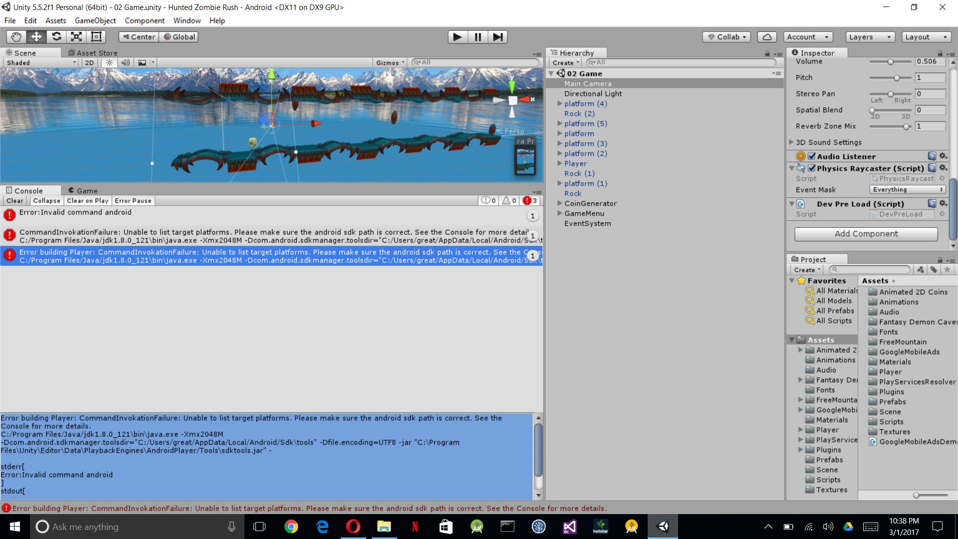 CommandInvokationFailure: Unable to list target platforms. Please make sure the android sdk path is correct. See the Console for more details.