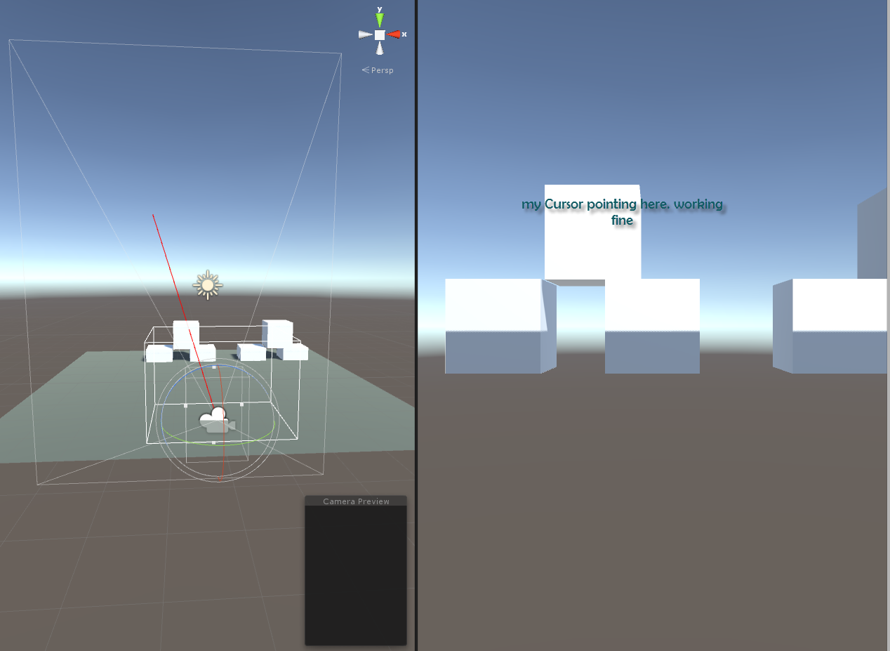 我试图从我的主要相机(这是steamvr的"Camera (eye)")到我的鼠标点在空间,这样我可以选择物体在我的3d环境。问题是我的raycast没有指向鼠标所在的位置,而且可能是45+度。我会发布屏幕截图,这样你就可以看到我的鼠标位置和raycast位置。有人有这个问题或解决办法吗?我非常肯定,这是一个steamvr特有的问题。