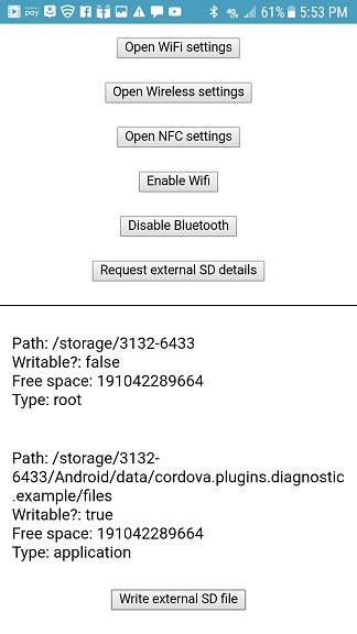 参见示例诊断应用程序显示extSD路径的屏幕截图。这个路径看起来与我在应用程序中运行诊断插件时得到的路径非常不同。