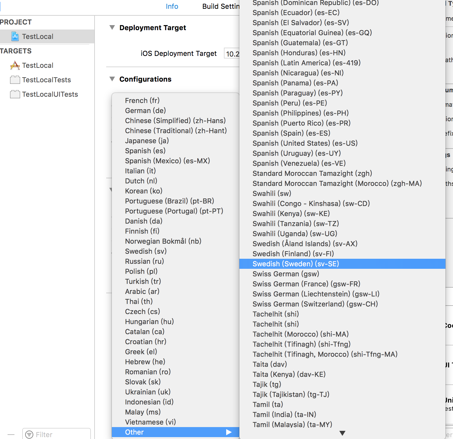 如果要在添加空白文本后轻松添加更多语言,可以通过选择Project添加“在其他答案中显示的语言”,在本地化部分“添加语言”部分再次选择“空白文件”,因为我们不希望本地化其他文件。