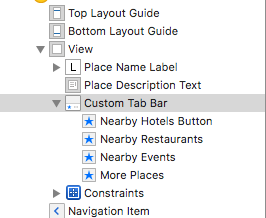 这不是问题行动。这是从故事板加载视图控制器的问题。您有名为NearbyHotelsButton.的IBOutlet但是您的视图控制器没有此属性。