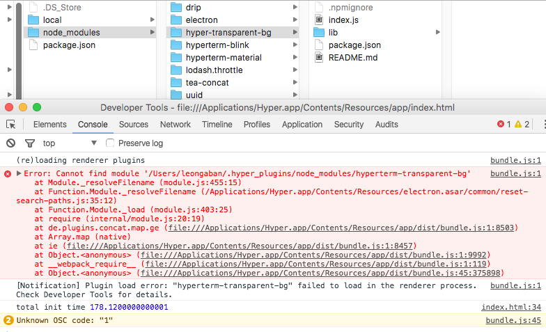 '/Users/leongaban/.hyper_plugins/node_modules/hyperterm-transparent-bg‘错误:无法在Module._resolveFilename (module.js:455:15)找到模块Module._resolveFilename