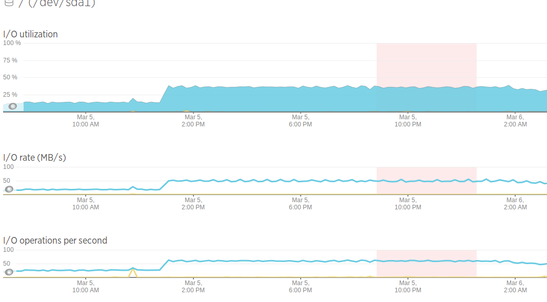 在更改overcommit_memory设置之后,我注意到I/O利用率从13%上升到36% (平均)。每秒的I/O操作增加了一倍,redis服务器CPU消耗增加了一倍多,占用的内存增加了66%。因此,服务器响应时间大幅度增加。这就是应用vm.overcommit_memory=1之后事情突然升级的原因。