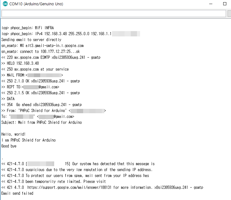 else Serial.println(F("Email failed"));