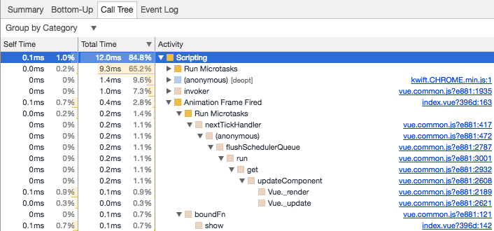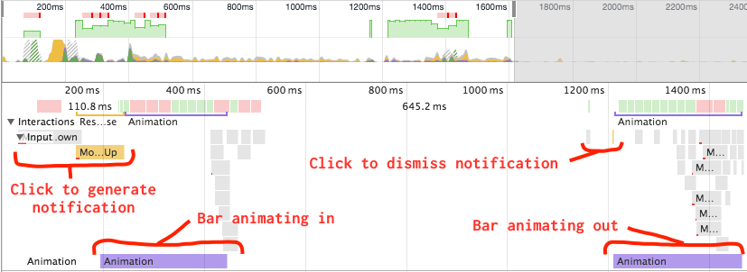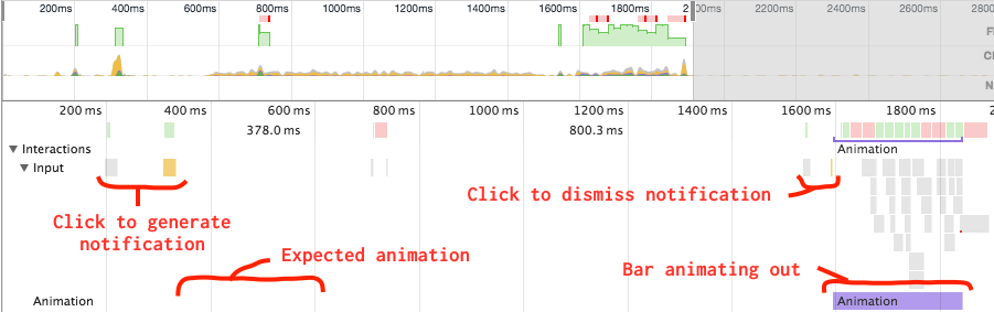 通知栏在大多数情况下并不能顺利地动画到可视视图中。在Chrome中捕获一个时间线时,在显示通知栏时没有显示运行的动画。动画总是正确运行时,酒吧是动画离开屏幕。动画总是在Firefox中正确运行。
