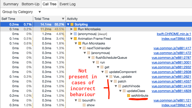 在与Vue的贡献者LinusBorg就Vue论坛进行了一些讨论之后,我们找到了一个可能的原因: