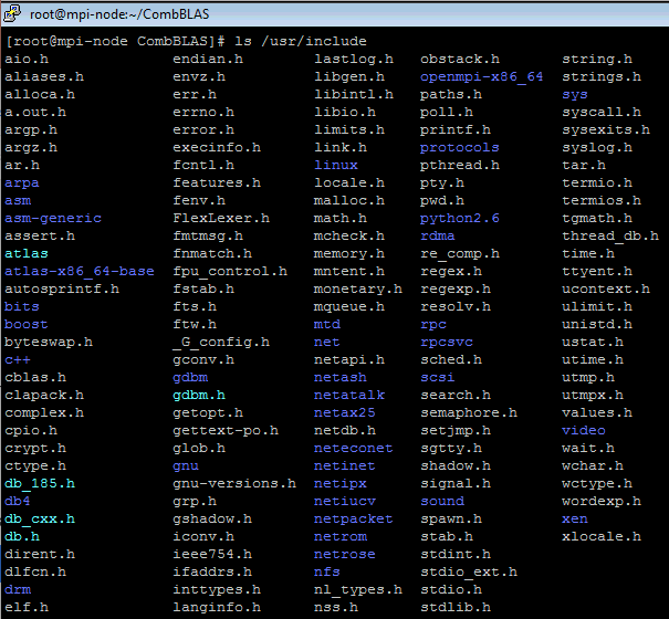 我检查了/usr/include目录,它不包含CombBLAS库: