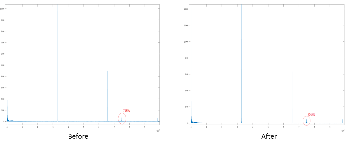 正如你所看到的,75千赫信号的频谱不会移动到零点。