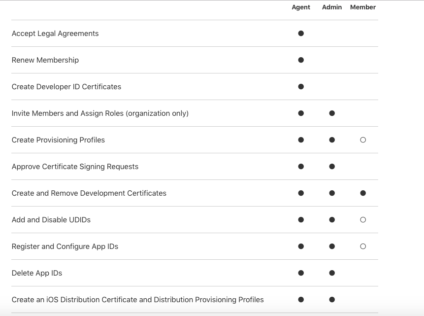 据我所知,开发证书可以由具有成员角色的人创建和删除,也就是我。