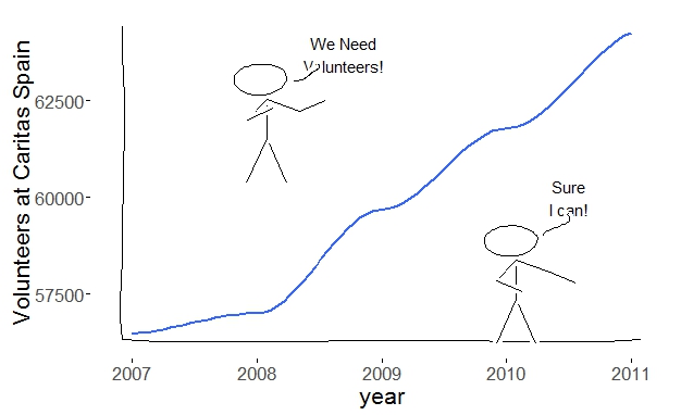 ylab("Volunteers at Caritas Spain") +