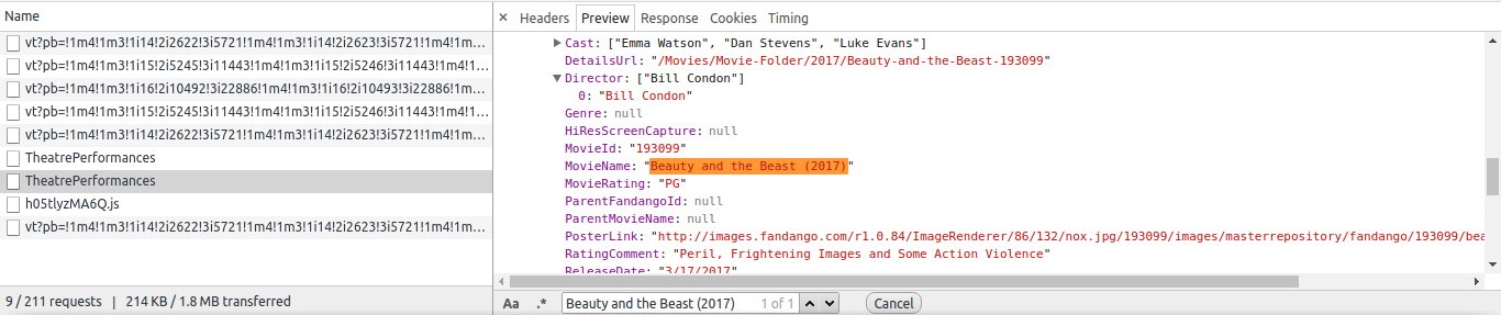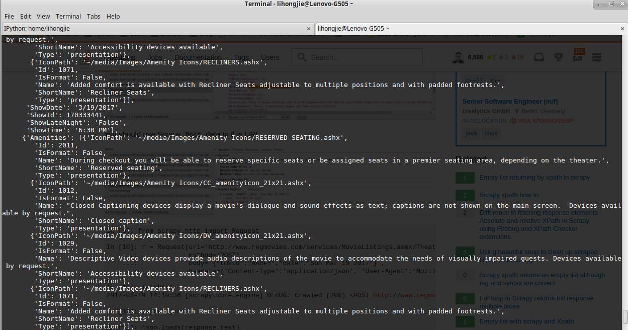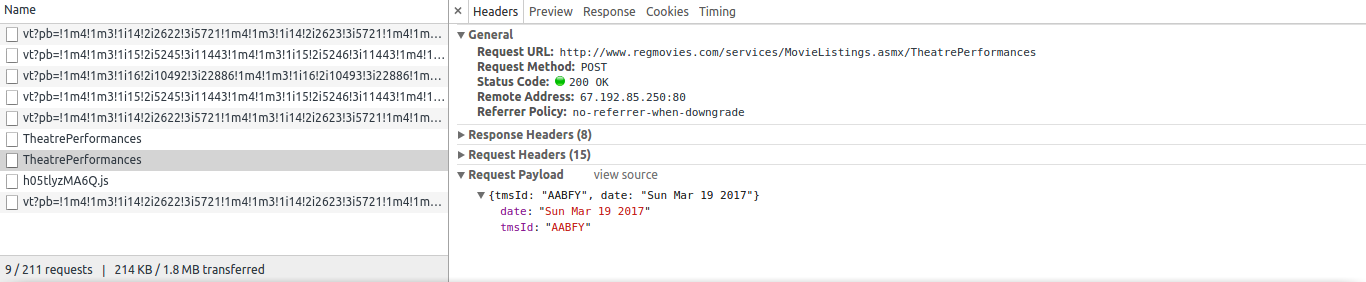 2017-03-19 14:10:36 [scrapy.core.engine] DEBUG: Crawled (200) <POST http://www.regmovies.com/services/MovieListings.asmx/TheatrePerformances> (referer: None)