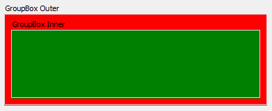 我想这里有两个QGroupBox‘s,因为从你的帖子中还不是很清楚。或者是否有一个组框和其他内部容器小部件?