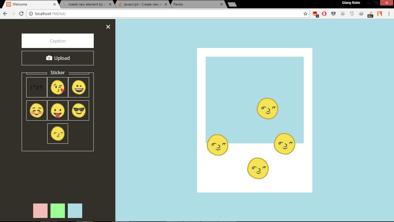如果我正确理解你的问题,你有一堆贴纸,用户可以从模板容器中选择,并将它们添加到另一个div中。