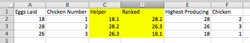 C列中的公式通过将产下的鸡蛋和鸡数组合在一起,创建了一个唯一的数字。