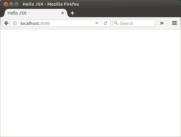 jsx/webpac.config.js b/hot 02/hello-jsx/webpac.config.js索引312f152.592e767 100644 --a/haf02/hello-jsx/webpac.config.js +++ b/chaair02/hello-jsx/webpac.config.js@ -13,7 +13,7 @@ module.exports ={ test: /jsx?$/,不包括:/node_node/,-加载者:[‘hot热’,+装载机:[“反应-热装载机/webpack”,‘babel?presets[]=es2015’,},},在最后一步之后,node正在运行。但是,当我在浏览器中单击localhost:8080时,我会看到一个空白页面: