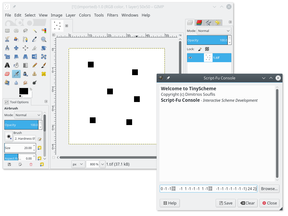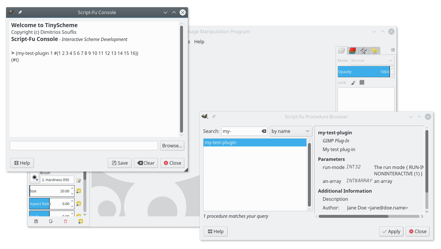 gimptool-2.0 --install-bin ./a.out我在Debian 9盒上做这件事。当我尝试使用Script-Fu界面运行插件时: