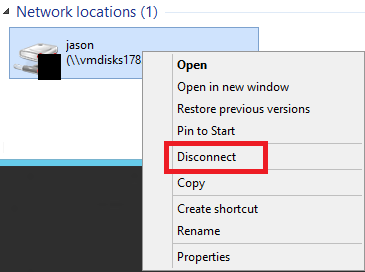 您可以通过RDP登录VM,然后选择网络位置并选择文件共享磁盘。选择断开。