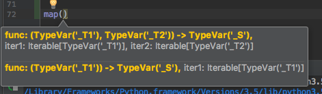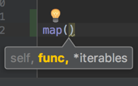 例如,如果我使用的是函数map(),我从PyCharm Community得到以下提示,这似乎是合理的: