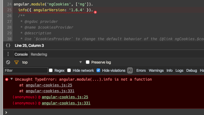 Uncaught :angular.module(.).info不是函数