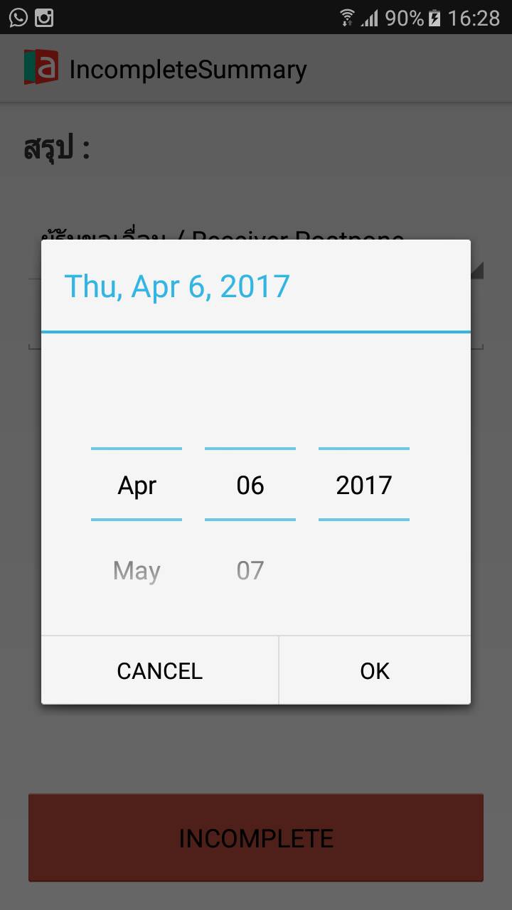 DatePickerDialog datePickerDialog = new DatePickerDialog(ActivityIncompleteSummary.this,