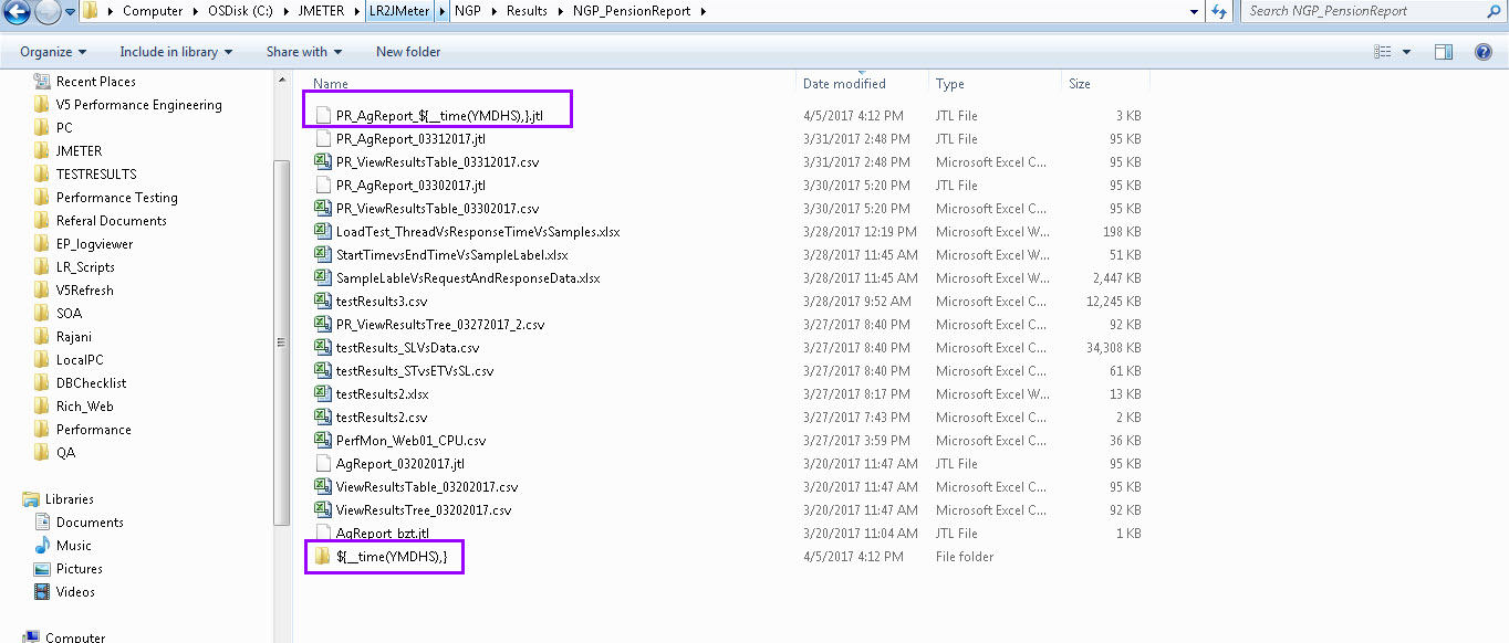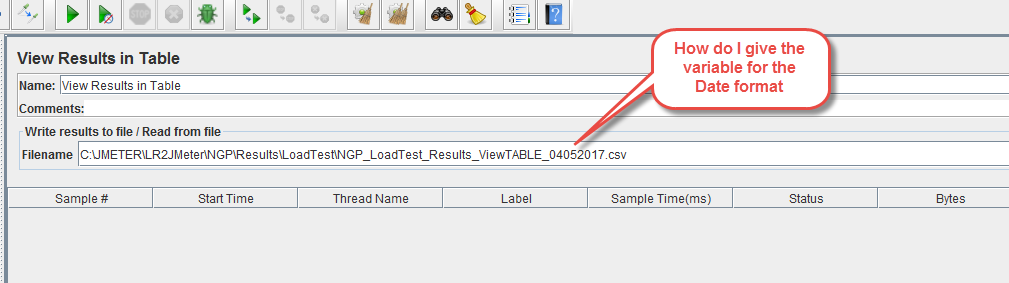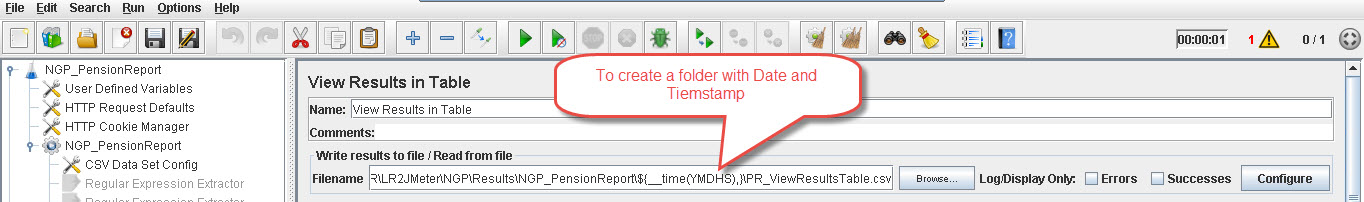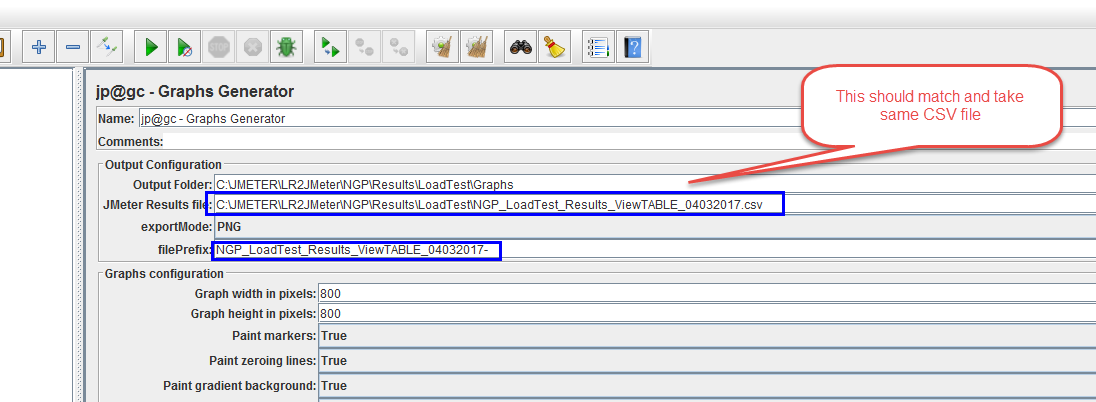 基本上,我试图用日期和时间戳自动生成测试结果文件CSV和jtl文件,并在图形生成器中传递结果文件,这样我就不需要使用日期和时间戳来修改jmx files.If可能的图形输出文件夹。