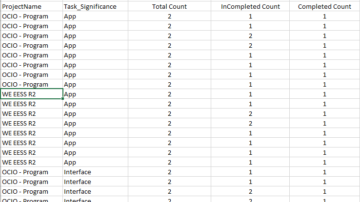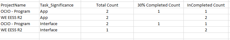 [ProjectUID],[Task_Significance], [TaskPercentCompleted] then 3 count fields