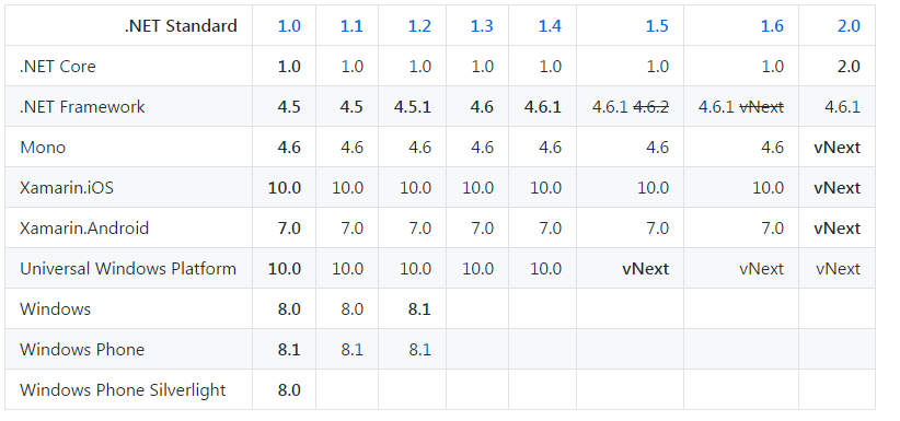 简单地说,看一下这里的图表,https://github.com/dotnet/standard/blob/master/docs/versions.md