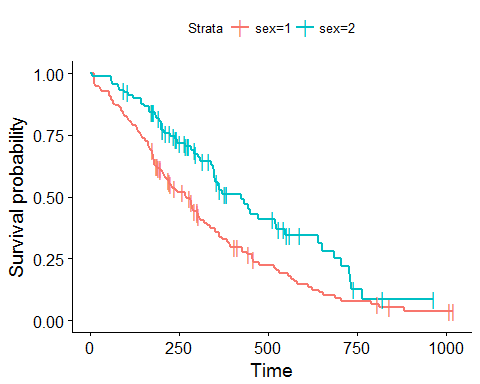 fit <- survfit(Surv(time, status) ~ sex, data = lung)
