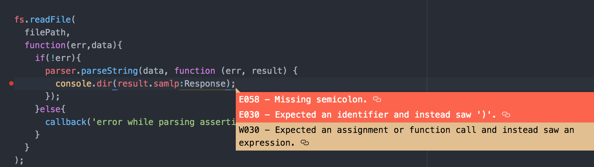 //Getting a linter warning/error at this point