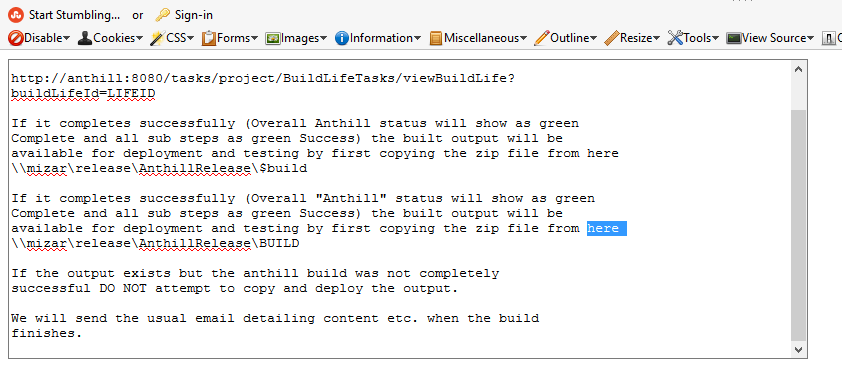 "", "If the output exists but the anthill build was not completely