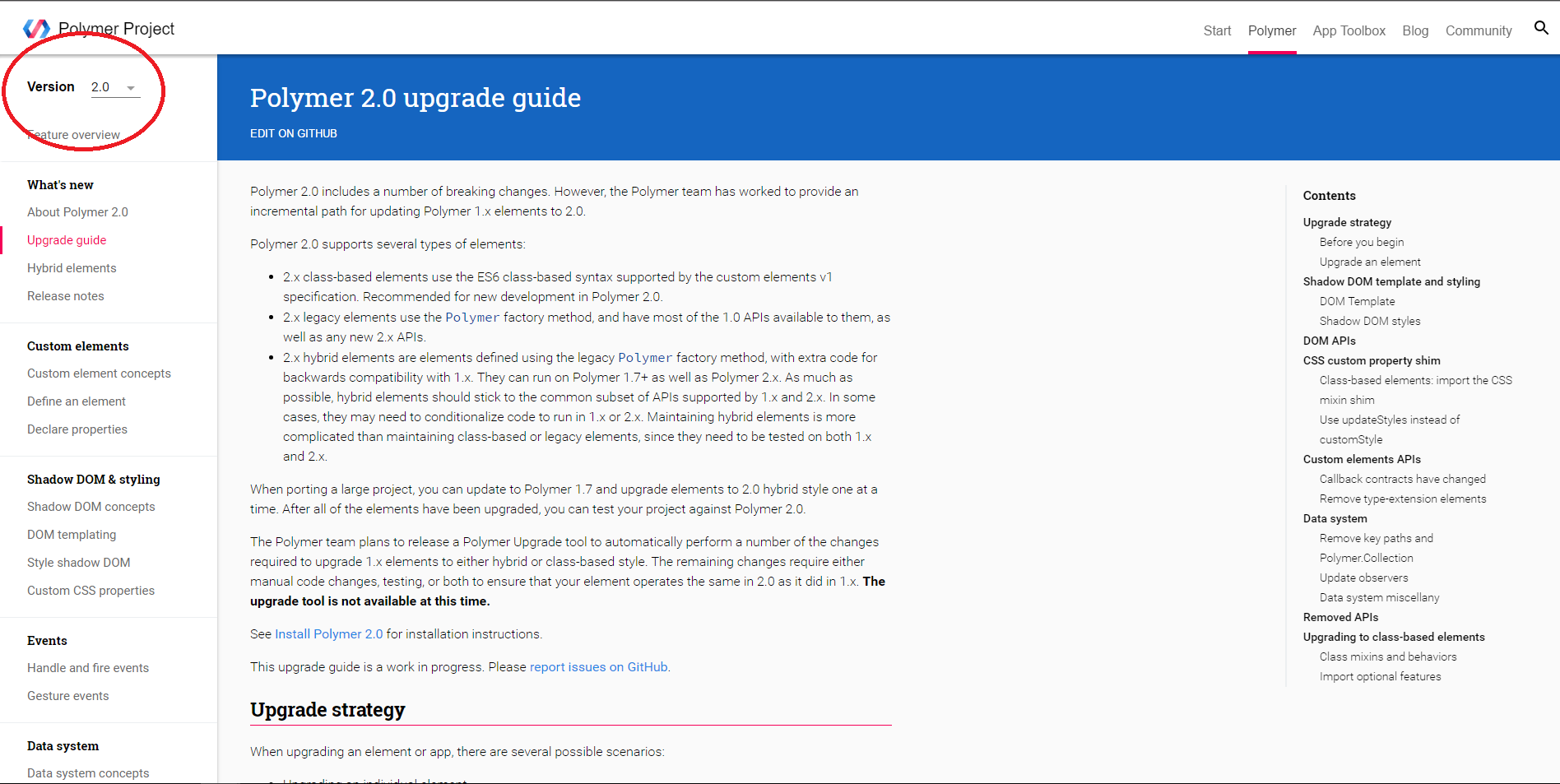 那么,在google搜索栏中输入升级指南聚合物有那么困难吗?当然,Polymer1.x元素在2.0中不能工作,因为有全新的语法和创建元素的不同方式,样式等等。