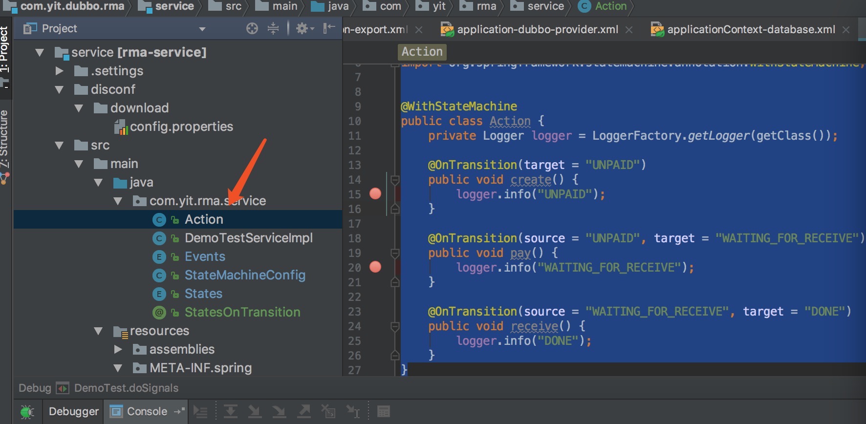 @OnTransition(source = "UNPAID", target = "WAITING_FOR_RECEIVE")