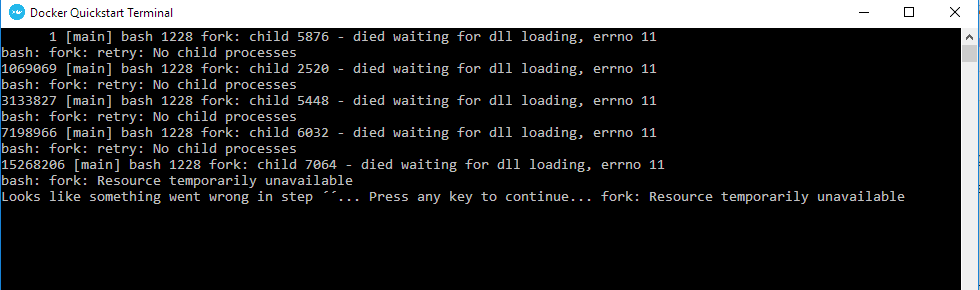 安装了用于Windows的Docker工具箱,但是在运行Docker终端后,我得到了错误: