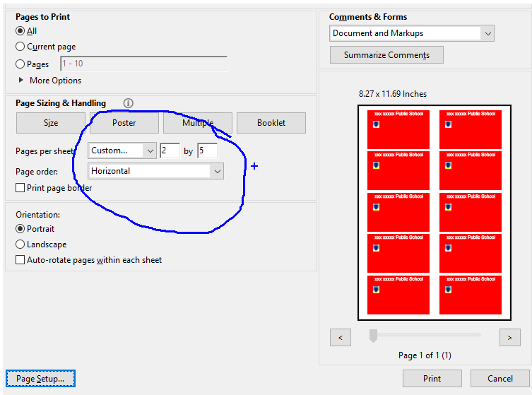 问题是,我想打印像上面的第一张图像,即定制2乘5每页。