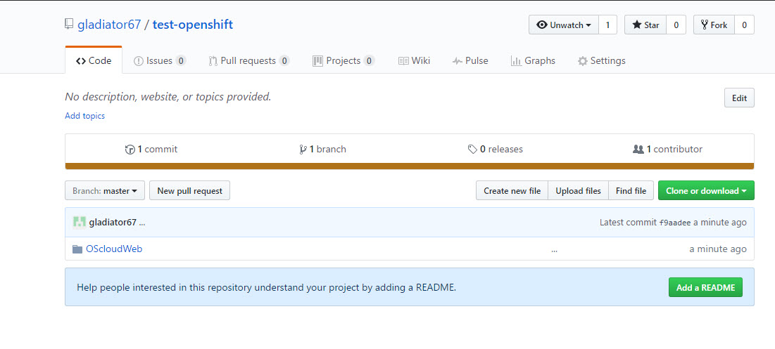 生野蝇荚是成功的。Git源是用这个url、https://github.com/gladiator67/test-openshift.git和windows文件夹设置的。这是我的文件夹图像。