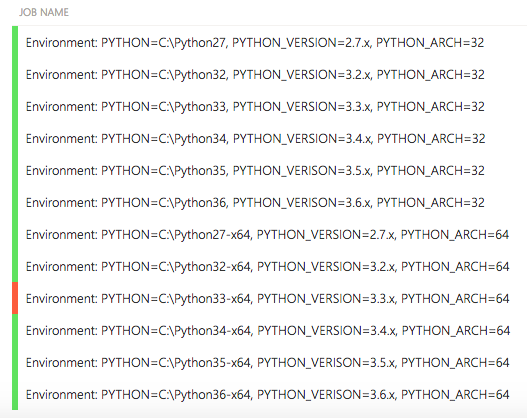 # PYTHON_VERSION: "2.7"因此,我的问题是,如何使AppVeyor允许我同时失败x86和x64位架构的特定Python构建?